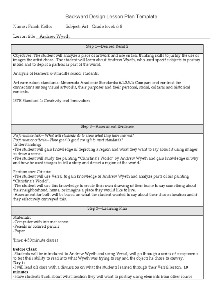 Web backward design is a way of planning lessons or training sessions by starting with the end goal in mind. This approach applies to any field, including business, the sciences and stem. Use this planning worksheet to follow the three steps of the backwards design process in order to plan an effective lesson. Backward design lesson plan template “our lessons, units, and courses should be logically inferred from the results sought, not derived from the methods, books, and activities with which we are most comfortable.