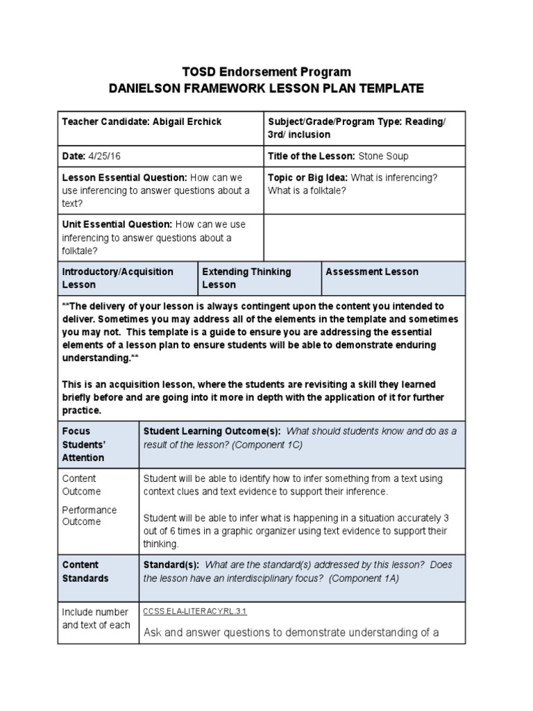 Web practical help in the lesson planning process including rubric generating sites, lesson plan templates, ideas for lesson activities, and links to useful classroom materials. Web danielson framework lesson plan template. Free mobile appedit on any device24/7 tech supportcancel anytime Each area of the template is aligned to components of the danielson framework. Web the danielson framework for teaching.
