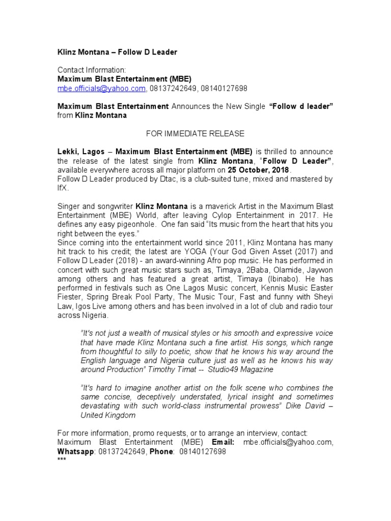 We’ve put together a variety of press releases from warner and universal music. Besides the normal body copy with adjustable fields for important information like your phone number, recording name, song/album title, etc., you’ll also find press release examples from leading artists like lady gaga, taylor swift, and justin timberlake. Here are our best tips to help you write one. Web a press release is a great way to promote yourself and your music for free; The first two nights of the convention, and from 9 p.m.