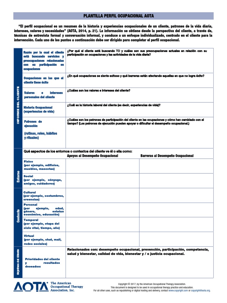 Web aota occupational profile template. What is an occupational profile? Web aota occupational profile template. Learn how to create a comprehensive occupational profile. Web aota occupational profile template “the occupational profile is a summary of a client’s (person’s, group’s, or population’s) occupational history and experiences, patterns of.