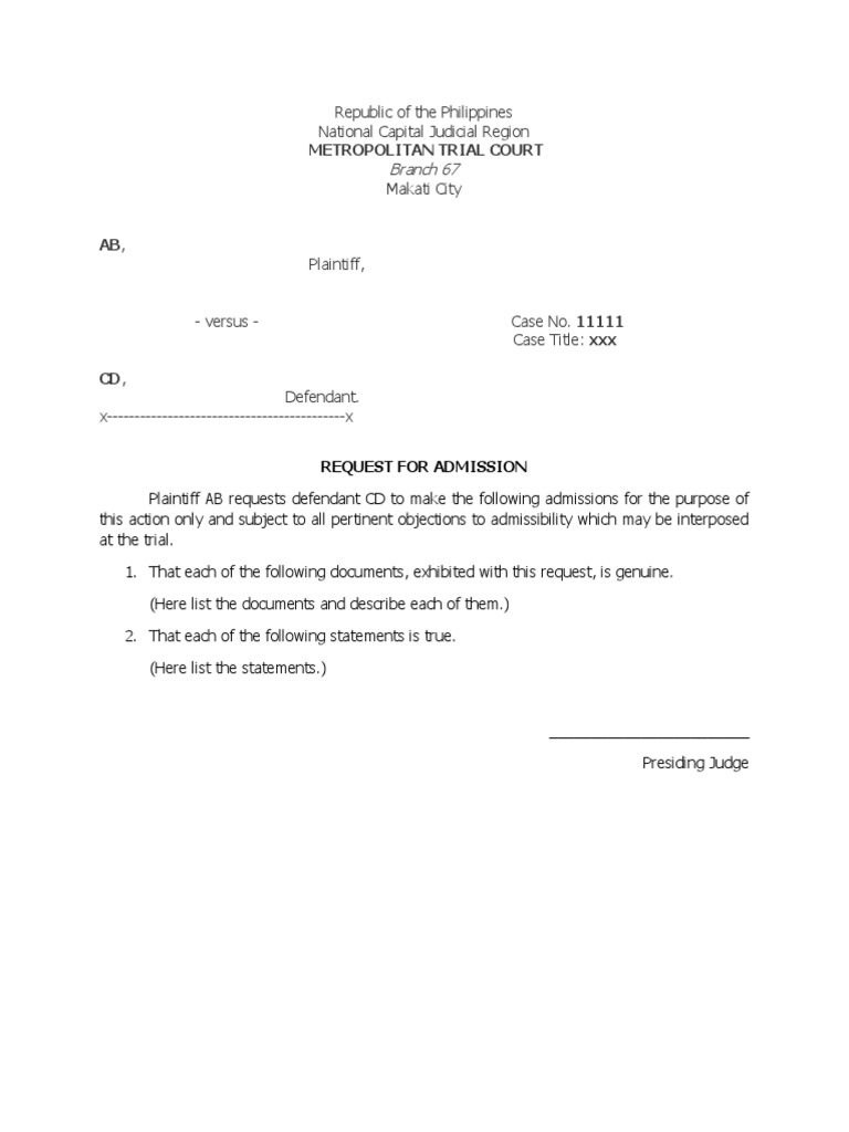 Web this toolkit offers resources that provide guidance on how to: Web sample requests for admission and examples of how to answer requests for admission in accident, malpractice and other tort claims. Drafting your request for admissions. This template provides guidance only. Download request for admissions sample.